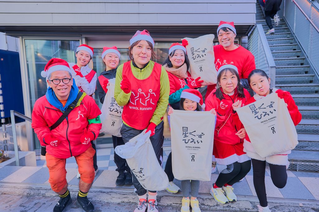 サンタたちが手にする袋の中身は、プレゼントではなく、街に落ちていた「星くず(ゴミ)」。 「子どもたちが歩く道に危険なものはないか」「街を汚すゴミはないか」と、一歩一歩踏みしめながら走るサンタの姿は、多くの住民の方々に安心と笑顔を届けました。ただ走るだけではない、パトランらしい温かな貢献の形が全国で見られました。